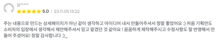 현 시점에 필요한 상세페이지는 잠재 고객의 심리 분석을 기반으로 한 기획 설계와 브랜드/제품 이미지에 맞는 디자인이 더해지는 일종의 종합 예술입니다.