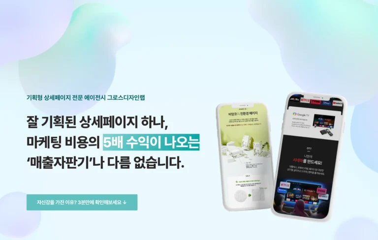 안녕하세요, 300곳 이상의 억대 매출 브랜드와 상세페이지 프로젝트를 진행한 그로스 디자인랩입니다.